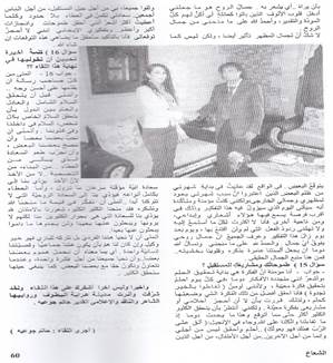 *- لقاء مع الفنانة المصرية الكبيرة إلهام شاهين – حوار نيرمين زكي . *- لقاء مع الفنانة اللبنانية أليسا .