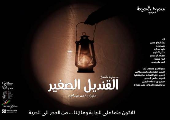 كانت البداية في مسرح الحجر عام ١٩٩٣ بمسرحية للأطفال "القنديل الصغير" كتبها الشهيد غسان كنفاني (عميد ادب المقاومة)، تلك البداية مع مخرجها جوليانو خميس في مخيم جنين ... وما زالت البداية في مسرح الحرية بنفس المخيم ومن بين أزقته ومع ذات الفكر الكنفاني نعيد انتاج المسرحية للأطفال والعائلة ولكن برؤية متجددة في العام ٢٠١٩.