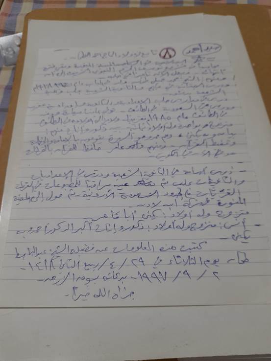 كتبها الشيخ زكريا المسعود نقلا عنه بُعيد كتابتها