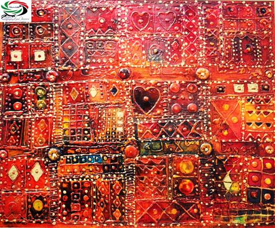 الفنان وليد والفنان رزق أبدعوا في هذا المعرض المشترك، وسأتناول في إطلالتي هذه أعمال الفنان وليد الجعفري ثم سيلي ذلك أعمال وإبداع الفنان رزق عبد الهادي، فالفنان وليد وبجولة في أعماله التي شاهدتها في المعرض تميز بقدرة فنية كبيرة وبصمة خاصة به، فهو يستخدم مادة أذكر أنه قال لي أنها من ابتكاره من خلال جهد كبير من التجارب، وهي مادة تمنح اللوحة أبعاد ثلاثية وشكل أشبه بالسيراميك ولكنها ليست سيراميك، وأعماله التي شاهدتها معروضة بالمعرض بلغت 25 عملا، يمكننا أن نحيلها إلى ثلاث فضاءات حسب الموضوع في اللوحة، فالمجموعة الأولى كانت تحلق في فضاء المكان بينما المجموعة الثانية في فضاء الوجوه والأجساد والثالثة حلقت في فضاء الرمز، وسأتناول نماذج من هذه المجموعات: