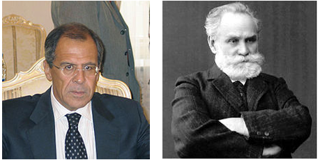 هذا عن السيد بابلوفأما السيد لافروف فقد ولد عام ١٩٥٠ وهو أول وزير في التاريخ يرأس وزارتين السوريه والروسيه معاً وهو صاحب نظرية التشابه بين كلابه وكلاب بابلوف .