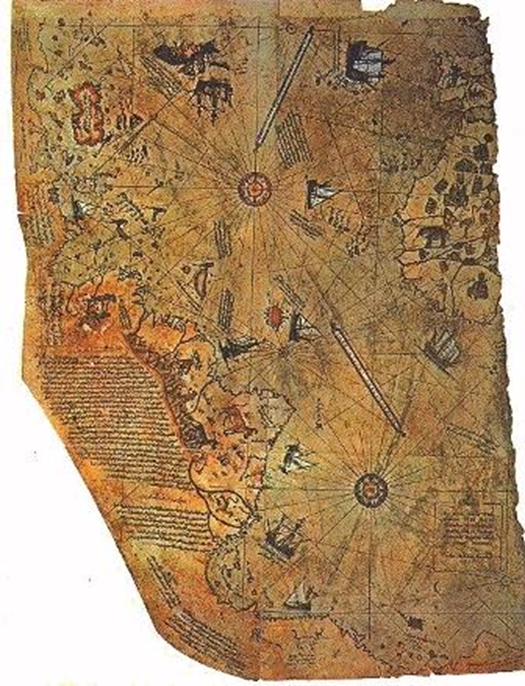 والشيء نفسه يقال للحدود الشرقي في القارتين الأمريكيتين, التي جاءت مطابقة تماما مع الحدود التي بينتها صور الأقمار الصناعية لتلك السواحل, ما تسبب بإحراج علماء الجغرافيا, لأن كولومبس لم يصل إلى تلك السواحل, ولم يتعرف عليها أبدا, ولم تكن لدية القدرة على رسم الخرائط بهذا المستوى المذهل, والحقيقة التي لابد من الاعتراف بها, هي إن العرب والمسلمين كانوا يصولون ويجولون في تلك السواحل, ويترددون عليها في أوقات غير منتظمة, وإن كولومبس سرق خرائطهم الملاحية وسلك المسالك التي سلكوها قبله, وان التراث البحري الأندلسي والعثماني كان هو الكنز الذي تعرض للسطو, وهو المفتاح الذي استعملته أوربا في حل شفرة المسالك الملاحية المخيفة.